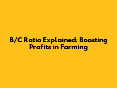 What is the B/C Ratio in Agriculture?