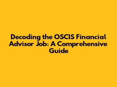 Unveiling the OSCIS Financial Advisor: What's the Gig?