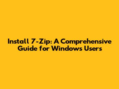 Hey guys! Today, we're diving into a super useful tool that every Windows user should have: 7-Zip. It's a free and open-source file archiver that can handle pretty much any compressed file you throw at it. Think of it as your digital Swiss Army knife for zipping and unzipping files. So, let's get right to it and show you how to install 7-Zip, step by step.