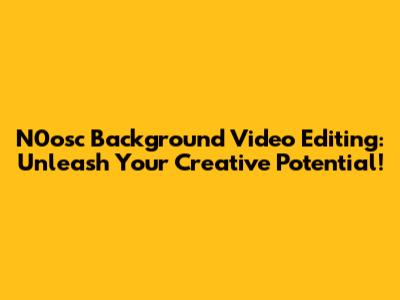 Step-by-Step Guide: How to Edit a N0osc Background Video