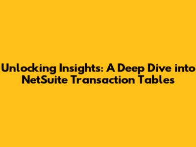 Hey guys! Let's dive deep into the world of NetSuite transaction tables. Understanding these tables is super important for anyone using NetSuite, whether you're a seasoned pro or just starting out. They're basically the backbone of how NetSuite stores all your financial and operational data. We're talking about everything from sales orders and invoices to purchase orders and journal entries. Knowing how to navigate and interpret these tables is like having a secret weapon – it empowers you to analyze data, generate custom reports, and ultimately, make smarter business decisions. This article will break down what transaction tables are, why they matter, and how you can start leveraging them to boost your NetSuite game. Think of it as your guide to unlocking a treasure trove of valuable information hidden within your NetSuite system. Ready to become a transaction table whiz? Let's get started!